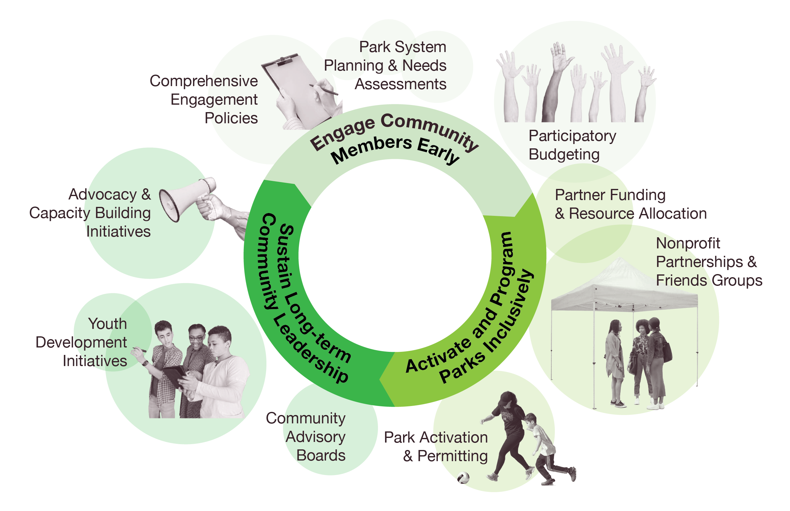 Grounds for Change offers a roadmap for local governments to make that possible. Built on national research and city case studies, this playbook highlights adaptable strategies that can be tailored to different local contexts. It provides practical tools to help city leaders, park professionals, and partners embed meaningful community engagement into policy and practice, creating structures for shared decision-making, transparent governance, and equitable park systems that truly reflect the communities they serve.